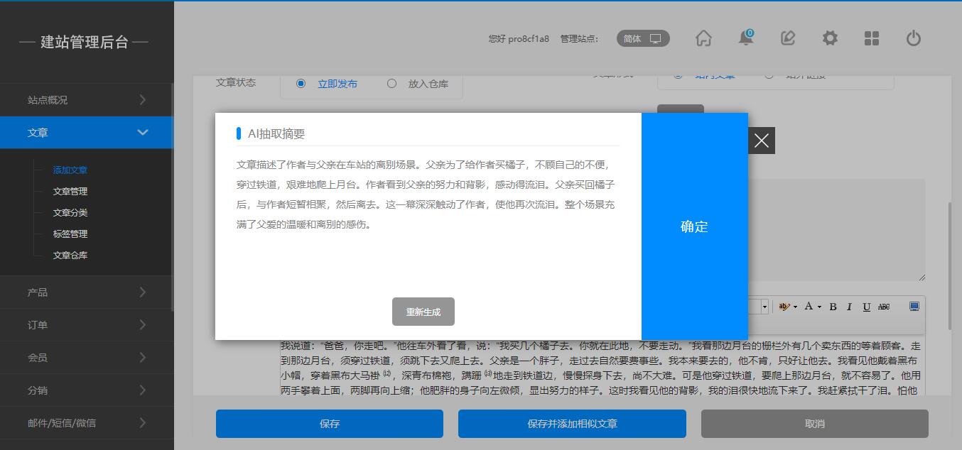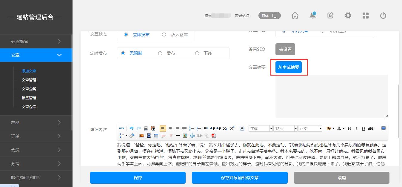 后台:添加文章—AI生成摘要